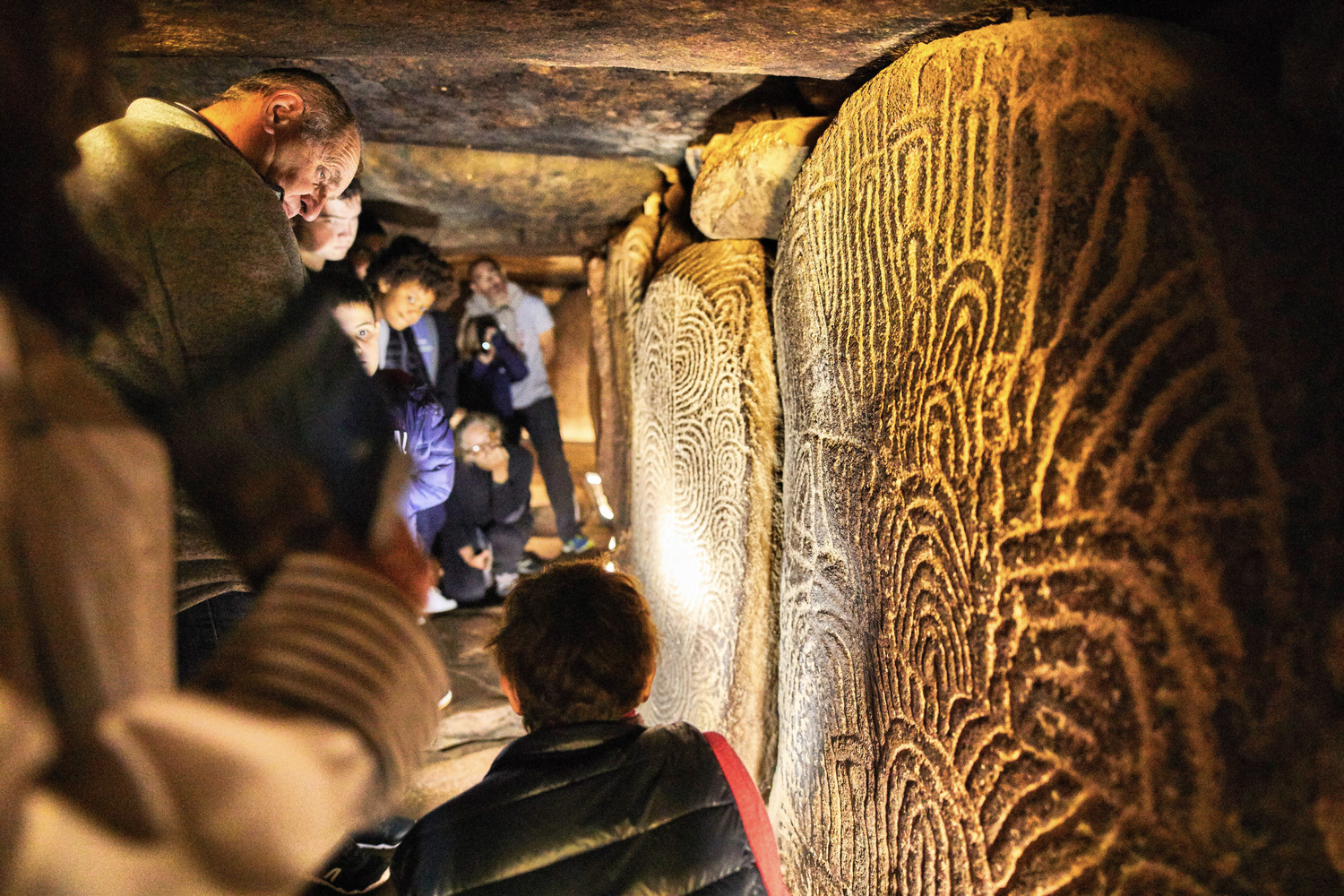 Unweit des „großen Menhirs“ findet sich ein weiterer Höhepunkt der megalithischen Kunst: ein Dolmen – eine prähistorische Grabkammer – mit reich verzierten Wänden. Eingravierte Symbole, darunter Tiermotive, erzählen von einer Welt, deren Sprache wir kaum mehr verstehen, deren Faszination aber ungebrochen ist.